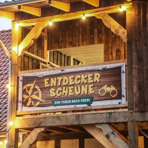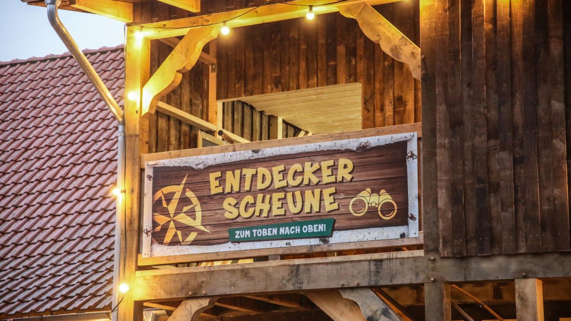 Die Spielelemente sind überwiegend aus Holz gefertigt und so ideal in die bestehende Fachwerkarchitektur des Gestütshofes angepasst. „Auch die Auswahl des Gebäudes hat einen tieferen Sinn“ so Ismer. „Wir möchten den Eltern die Möglichkeit geben, Entspannung im gerade umgebauten Hofcafé zu finden, während die Kinder sich in der Entdeckerscheune austoben können.“
