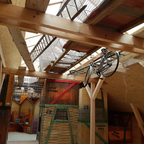 Seit Ende 2023 begeistert der Indoor Spielplatz im Tierpark Ströhen vor allem die kleinen Tierparkfans. Speziell um haptisches und fantasievolles Spielen zu fördern, wurde ein kompletter Dachboden eines Pferdestalles zum Abenteuerspielplatz ausgebaut.
