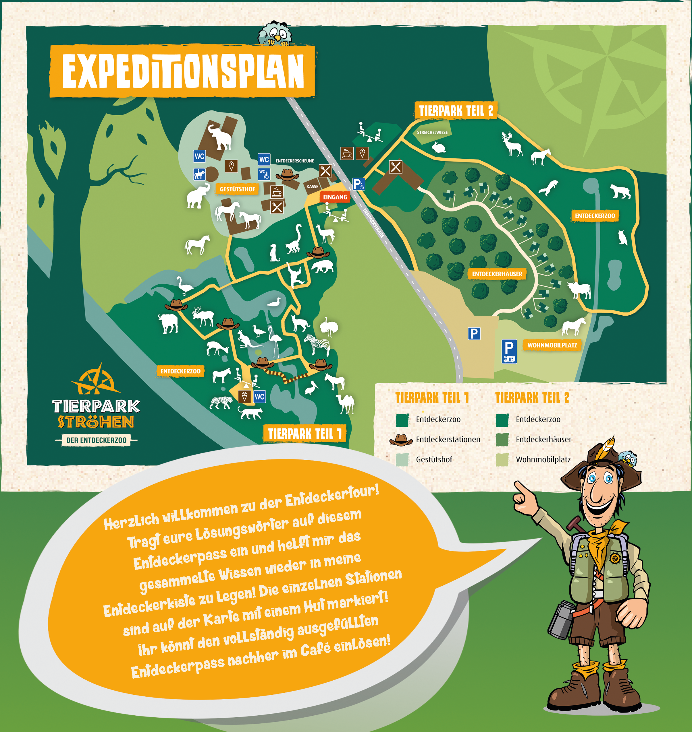 Aufgepasst Abenteurer! Ab sofort könnt ihr euch im Tierpark Ströhen mit Emil dem Entdecker auf eine aufregende Entdeckertour begeben.