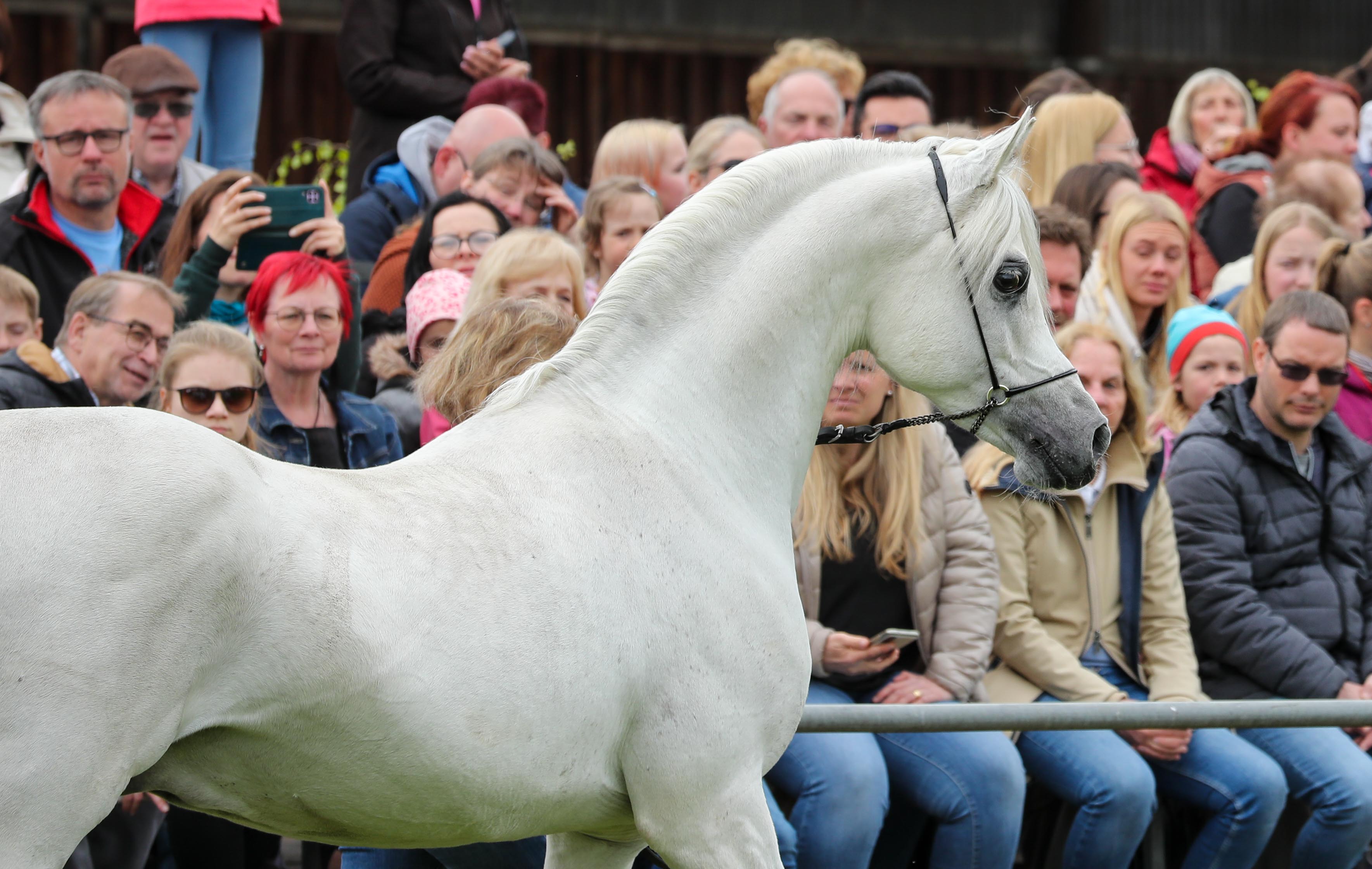 Dr. Ismer nutzte die Gelegenheit, um den Besuchern einen detaillierten Einblick in die Zucht und die Besonderheiten der vorgestellten Pferde zu geben. Dadurch bot die Veranstaltung nicht nur Kennern, sondern auch Laien einen spannenden Einblick in die Araberzucht. Er unterstrich: „Wir sind stolz, eine außerordentlich breit gefilterte Kollektion internationaler Spitzenhengste anbieten zu dürfen, welche durch den selbst gezogenen EBT Bel Subayan Sohn IS Wincent und durch den aus Brasilien importierten WH Justice Sohn Parys K noch einmal komplettiert wurde. Auch der zweimalige Vize-Weltchampion Ascot DD hat wieder mal durch einen besonders hochwertigen Fohlenjahrgang überzeugen können.“ Diese Worte stießen bei den Besuchern auf große Zustimmung, die die Fohlen nicht nur als schöne Abwechslung, sondern auch als Publikumslieblinge empfanden.
